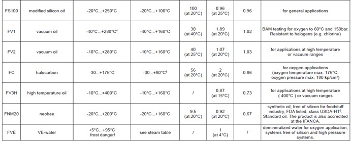 可提一定范圍的物質(zhì)如壓力傳送液體,適用于特殊工作。請(qǐng)參考下表和恰當(dāng)?shù)臄?shù)據(jù),以獲得詳細(xì)信息。